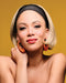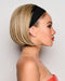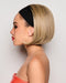 Easy to wear, always in fashion! This sassy, swing bob is actually a headband wig that slips on in seconds for an instantly stylish look. Position behind or over your front hairline. The classic black stretch headband has a hidden 7-prong comb at the front for added security and an elasticized button adjuster at the nape to personalize the fit.