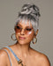 This classic bang and full bun combo makes a perfect pair. Style the bun messy or brush around into a sleek ballerina updo. The face-framing fringe is layered with longer side pieces that can be blended with your own hair, tucked behind the ear, or worn onto the face.
